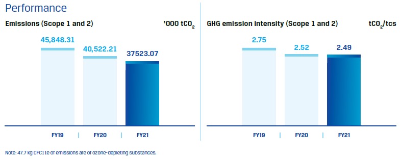 Performance of JSW Steel on Climate Change related Parameters