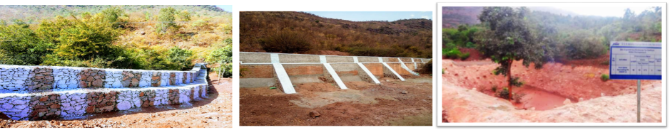 - Reducing the speed of water flow by constructing a series of check dams for reducing erosion and enhancing percolation.
